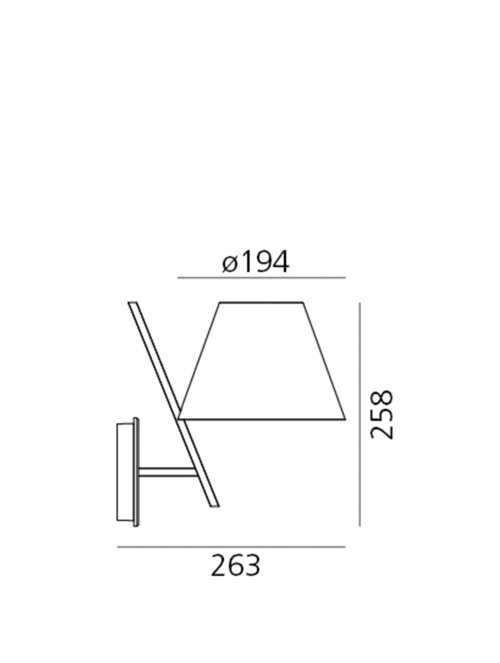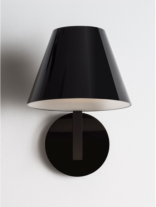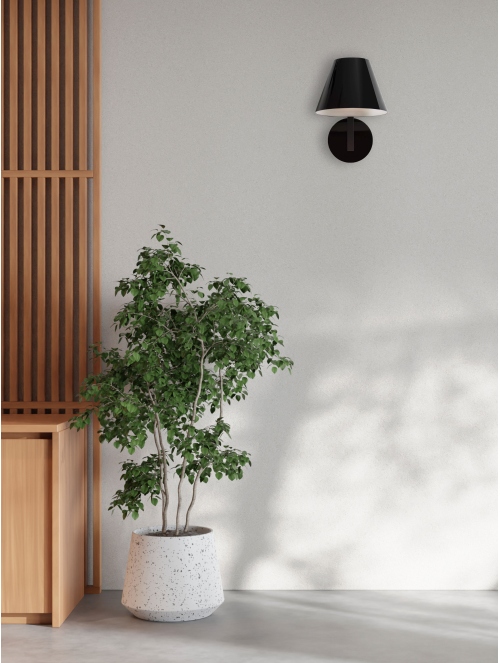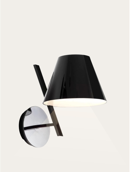La petite en versión aplique presenta una pantalla arquetípica que parece flotar sobre una estructura inclinada, creando una composición geométrica sorprendente. Con dos difusores que emiten una luz directa e indirecta suave y agradable.