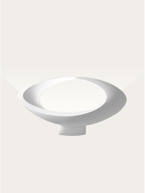 Con un diseño contemporáneo, con su forma sinuosa que crea un efecto de anillo luminoso. La emisión de luz indirecta resalta su estructura, proporcionando una iluminación difusa y confortable en cualquier espacio.
