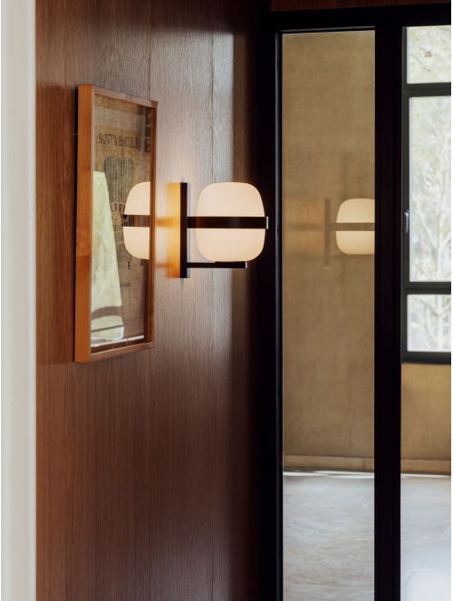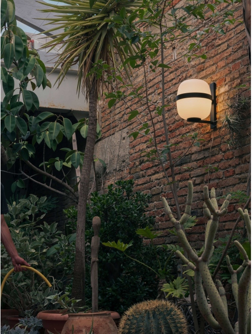 Una elegante reinterpretación para exterior de la lámpara Cesta, con una estructura de acero inoxidable, el aplique presenta un difusor de vidrio opal, proporcionando una luz cálida y envolvente. Su diseño minimalista y funcional se adapta perfectamente a espacios contemporáneos, tanto en interiores como en exteriores.
