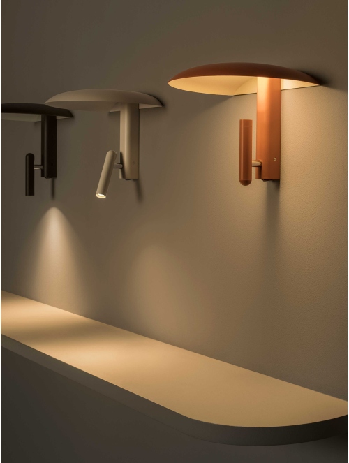 Si orientamos el lector hacia la pantalla como si fuera un sombrero, cubre el foco y permite que al orientar la luz hacia arriba, rebote en su interior y proyecte un haz de luz suave, creando una cálida iluminación de ambiente.