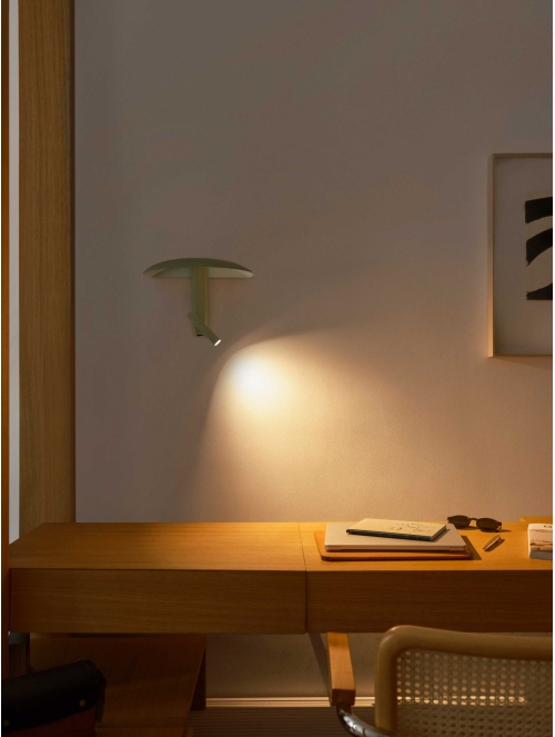 Entrega 10-15 días.Konoha es un aplique mural que proyecta la luz hacia la pared y permite dirigir parte de ella mediante un reflector orientable. Su diseño escultórico y ligero recuerda a una hoja suspendida en el aire, aportando una iluminación indirecta cálida y matizada. Una luminaria decorativa y funcional pensada para acentuar superficies verticales con sutileza.