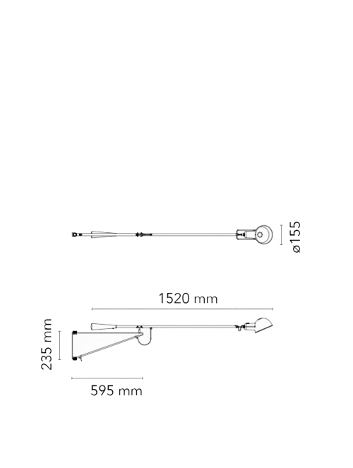Entrega 3-5 semanas para fabricación.La 265 small es una lámpara de pared articulada con una estética elegante y funcional. Diseñada en 1973, combina un brazo largo y ajustable con un cabezal giratorio que permite dirigir la luz con precisión. Su contrapeso en hierro fundido garantiza estabilidad sin muelles. Ideal para iluminar mesas, sofás o cabeceros