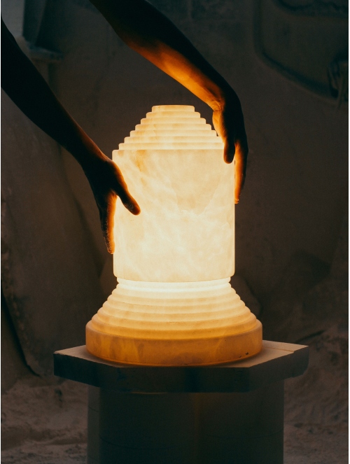 Entrega 3-5 semanas para fabricación.Inspirada en la inacabada torre bíblica de Babel, esta lámpara se concibe como una escultura sólida que, además de su presencia escultórica, ofrece una iluminación íntima y envolvente. Fabricada en alabastro, un material que en su época fue considerado pretencioso, Santa & Cole lo reinterpreta con sensibilidad y buen gusto, elevándolo a una categoría noble. Gracias a las variaciones naturales del alabastro, cada pieza es única, con vetas y transparencias irrepetibles que enriquecen su carácter artesanal.