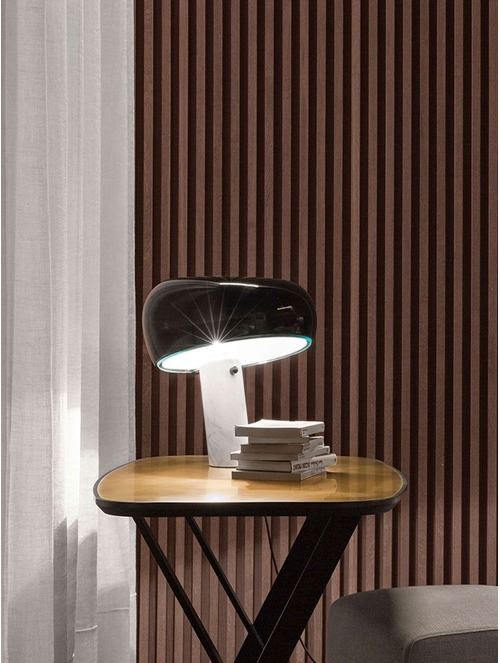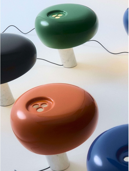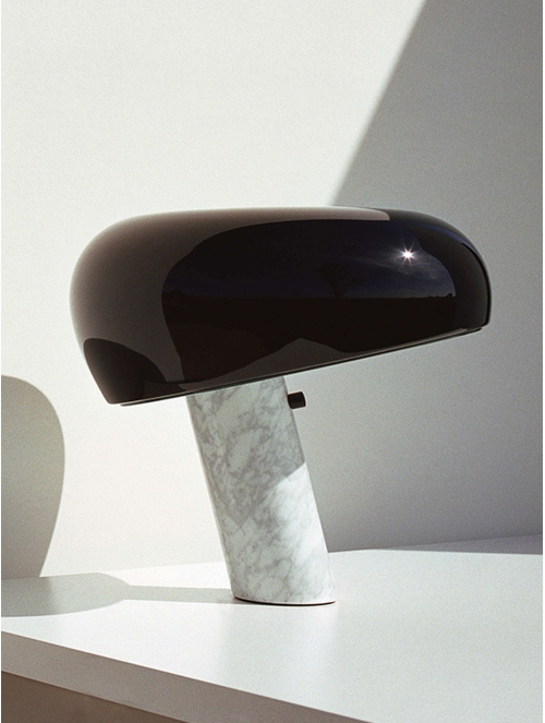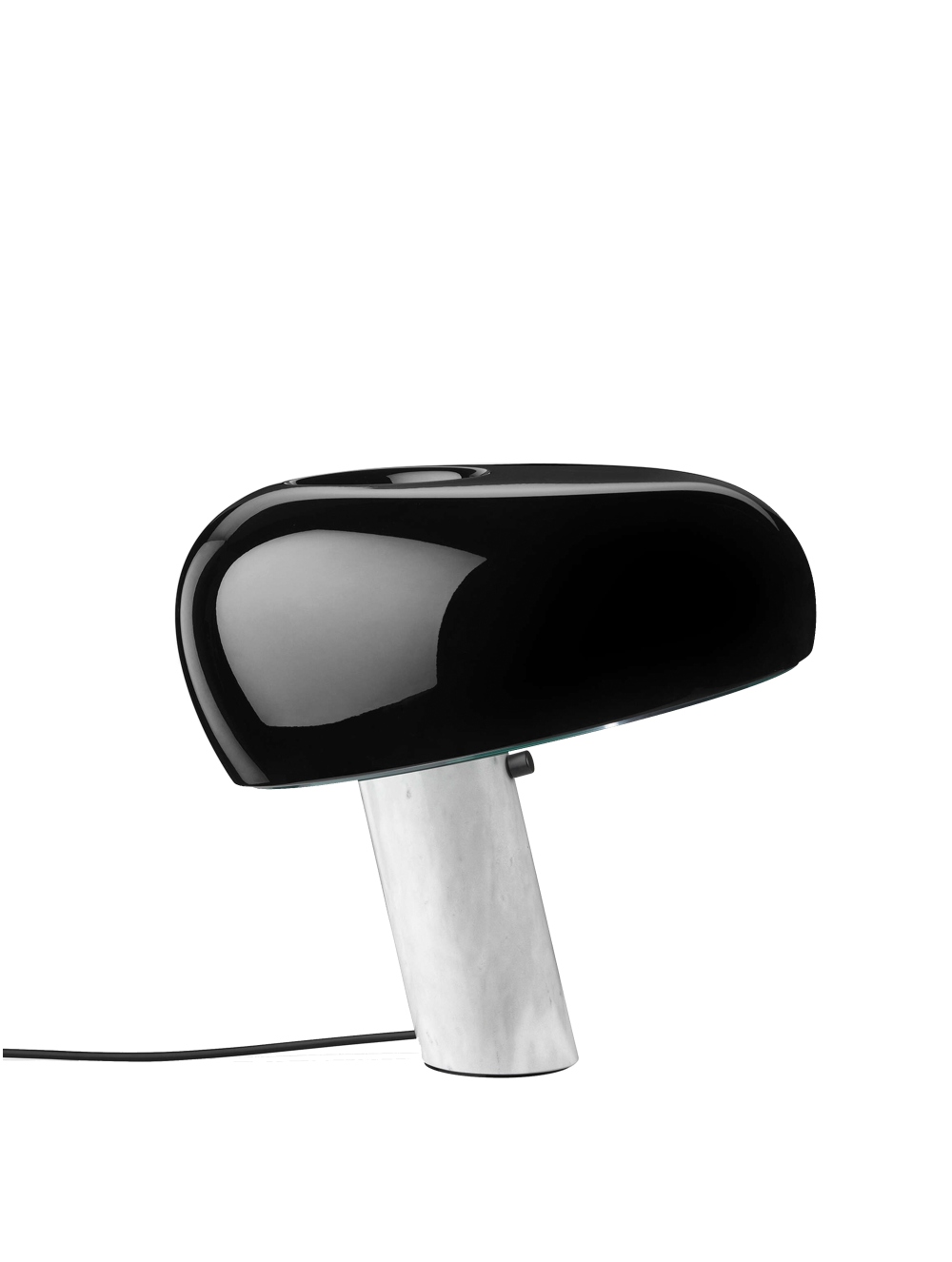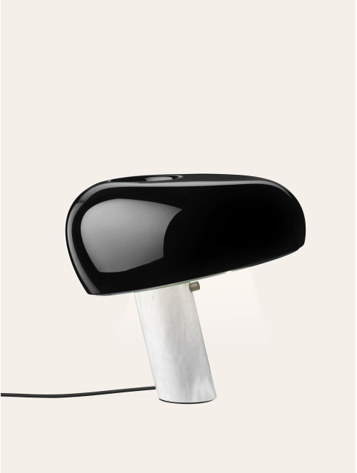 Entrega 3-5 semanas para fabricación.Una lámpara icónica que combina un reflector metálico esmaltado con un difusor de vidrio grueso, todo apoyado en una base inclinada de mármol de Carrara. Incluye un atenuador táctil integrado, que permite ajustar fácilmente la intensidad de la luz. Diseño juguetón y funcional que rinde homenaje al querido personaje de cómic Snoopy.