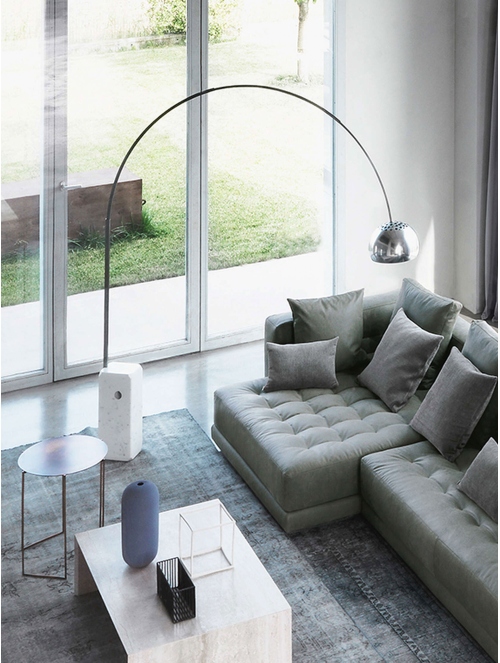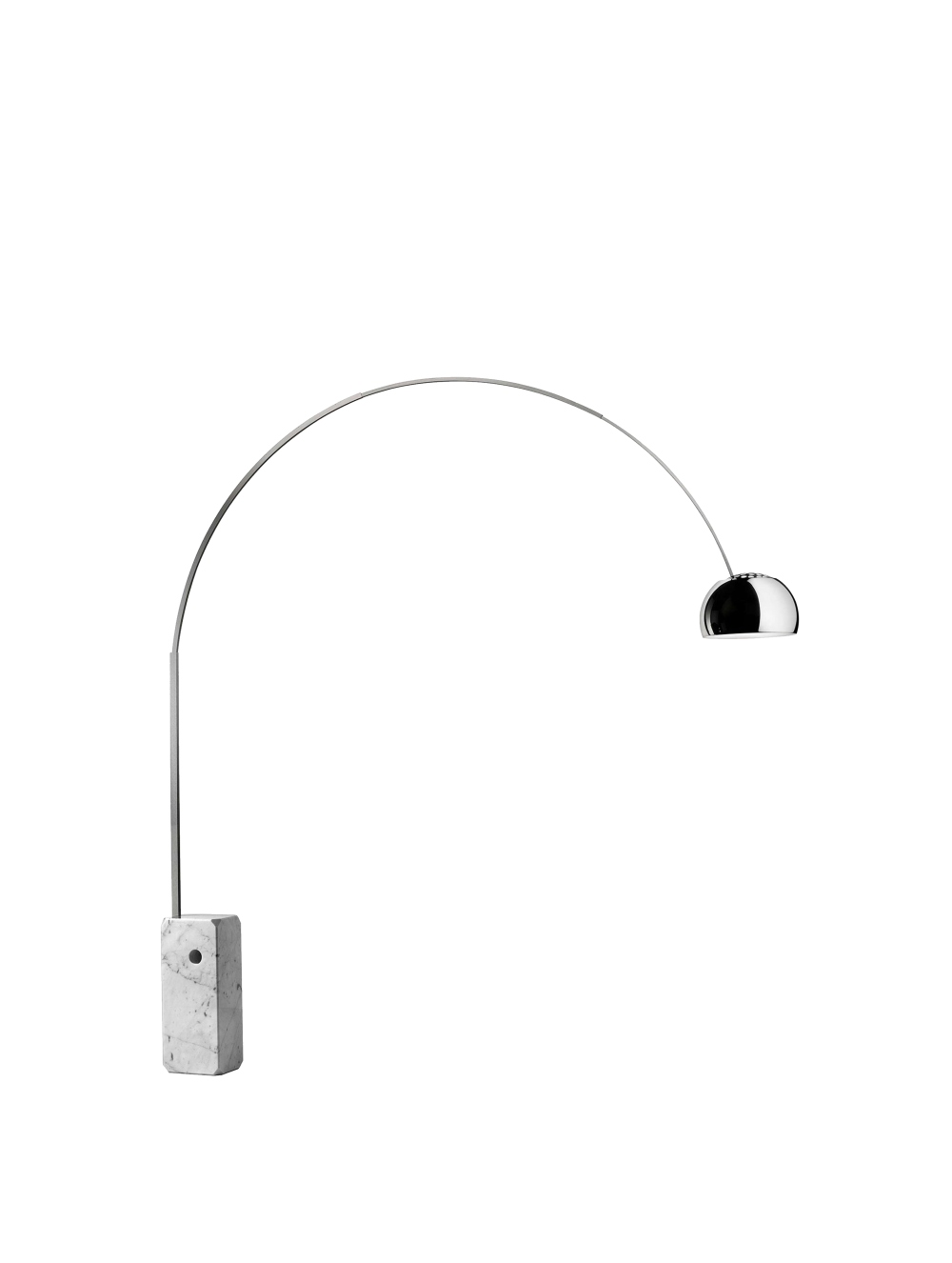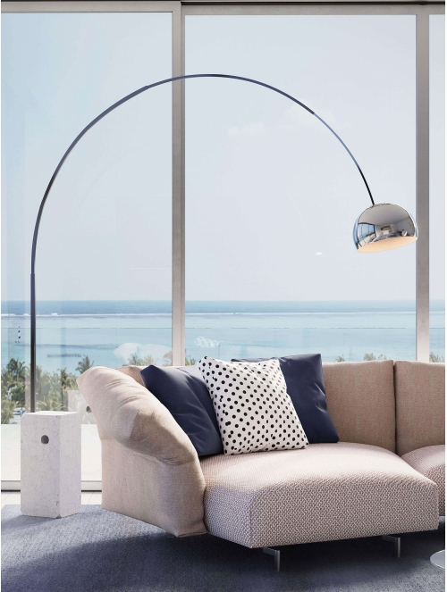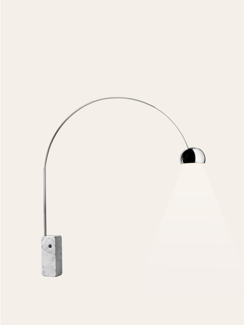 Un verdadero icono del diseño italiano, Arco destaca por su elegancia atemporal y presencia escultural. Inspirada en una farola urbana, combina la solidez del mármol con la ligereza del arco de acero, creando una silueta majestuosa que parece flotar en el espacio.
