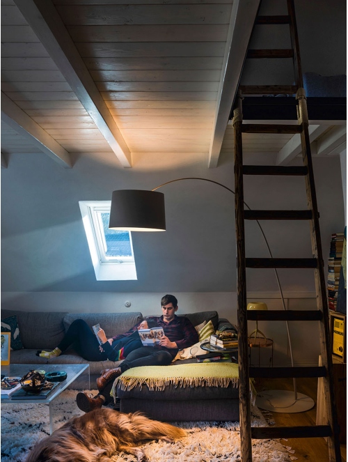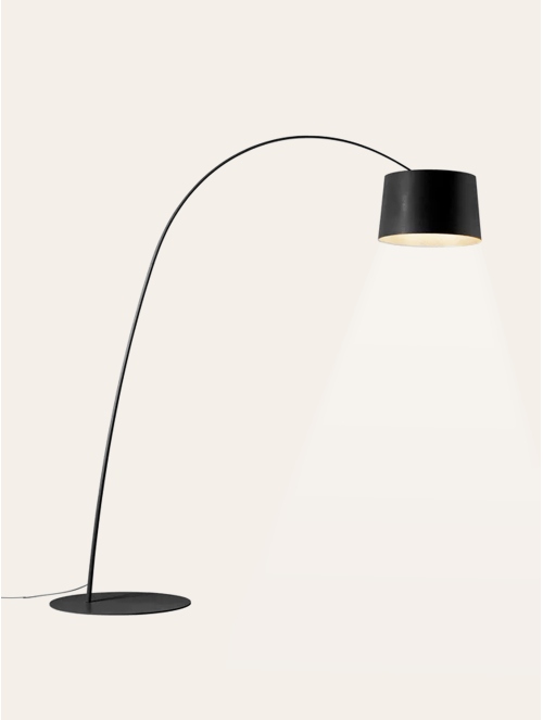 Twiggy es una lámpara de pie de líneas esbeltas y elegantes, con un brazo arqueado que permite proyectar la luz de forma precisa. Su difusor de gran tamaño garantiza una iluminación directa hacia abajo y una sutil luz ambiental hacia arriba, ideal para crear atmósferas acogedoras con un toque contemporáneo.