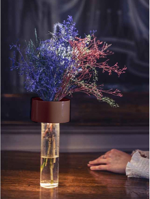 Entrega 3-5 semanas para fabricación.Fleur es una lámpara de sobremesa versátil que combina iluminación y decoración floral. Incorpora un pequeño florero integrado en su base de cristal transparente, que permite colocar flores frescas o secas. Su difusor cónico de vidrio soplado proyecta una luz suave y cálida, perfecta para crear atmósferas acogedoras en mesas auxiliares, escritorios o mesitas de noche.