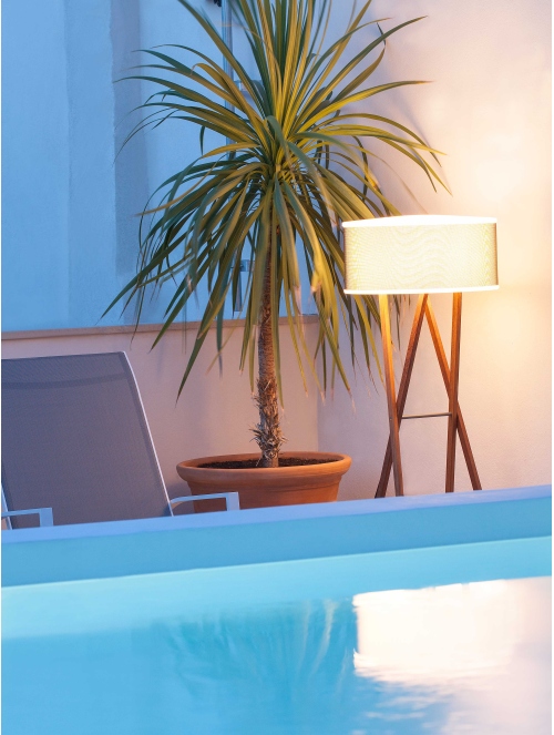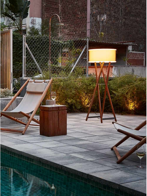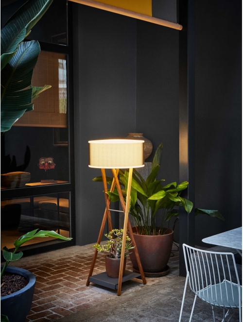 Entrega 3-5 semanas para fabricación.La Cala Outdoor es una lámpara de pie diseñada para exteriores que combina una estructura de madera de iroko con una pantalla de polietileno, envuelta en una funda de textilene con cremallera. Diseñada para resistir las condiciones exteriores, es perfecta para iluminar y decorar espacios al aire libre con estilo.