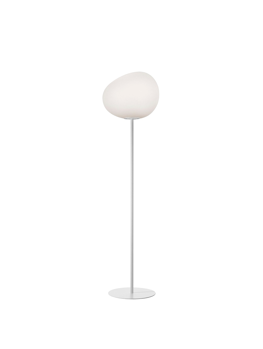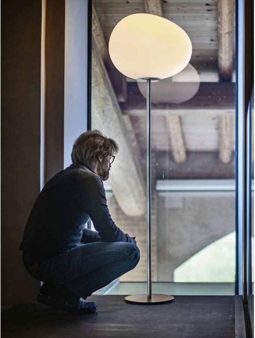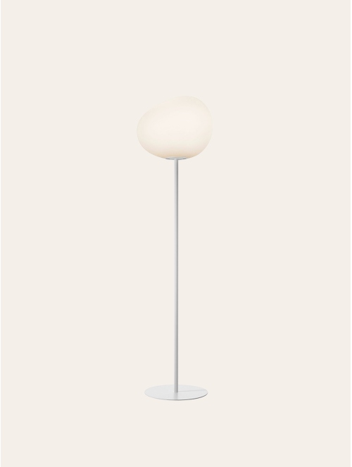 Gregg es una lámpara de pie de formas orgánicas e irregulares, con un difusor de vidrio soplado que proporciona una luz cálida y homogénea. Su diseño encaja perfectamente en salones, dormitorios o espacios de lectura. Gracias a su estética atemporal, se adapta a cualquier interior dando un toque de elegancia.