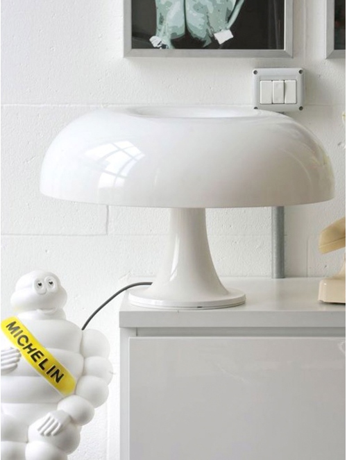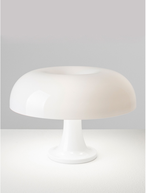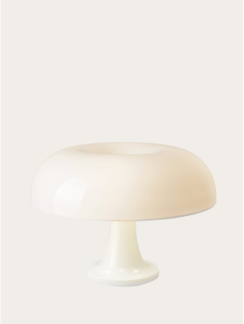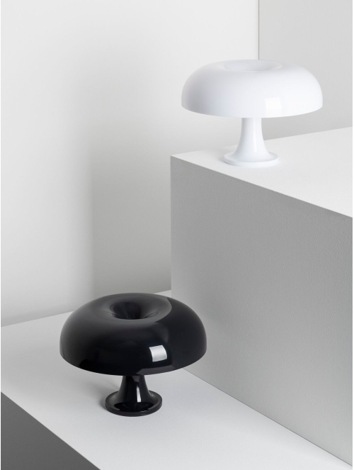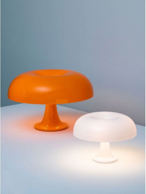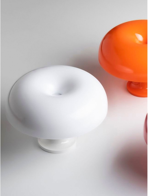 Nessino es una lámpara de sobremesa icónica con un diseño retrofuturista inspirado en los años 60. Su estructura de policarbonato moldeado en colores vibrantes o en blanco le confiere un aspecto moderno y atemporal. Proporciona una iluminación difusa y acogedora, ideal para ambientes decorativos y funcionales.