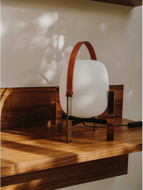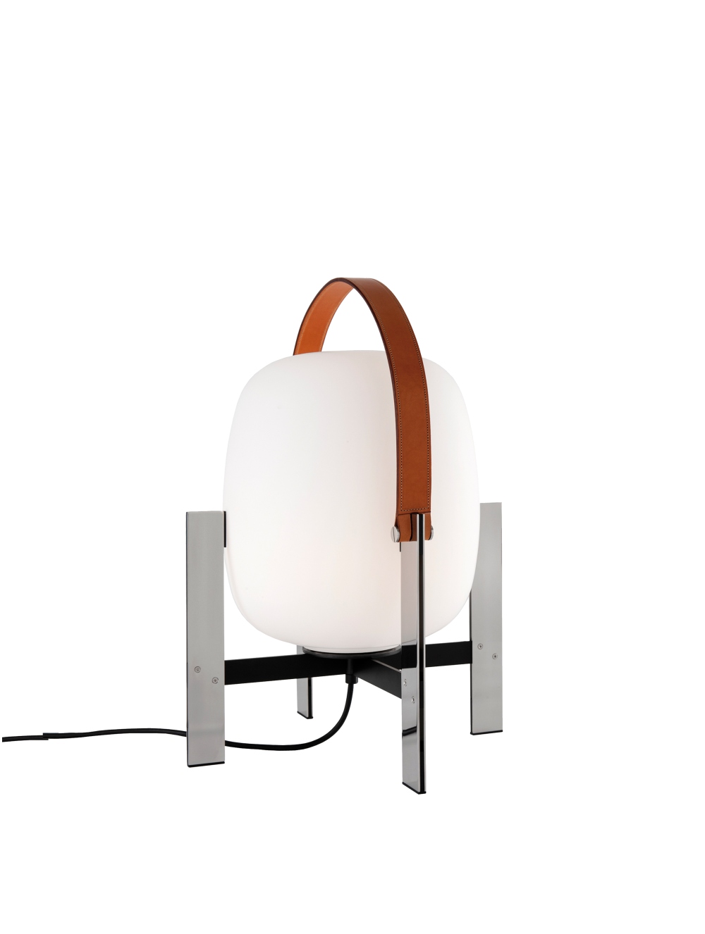 Entrega 3-5 semanas para fabricación.La Cesta Metálica es una reinterpretación contemporánea de la clásica lámpara Cesta. Esta versión presenta una estructura de acero inoxidable que sostiene un difusor de vidrio opal, ofreciendo una iluminación suave y envolvente. La adición de un asa de cuero natural proporciona versatilidad y facilidad de transporte, permitiendo su uso tanto en mesas como en el suelo.