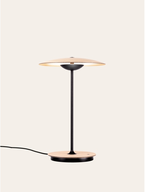 Entrega 3-5 semanas para fabricación.La Ginger de sobremesa aporta elegancia, con una base metálica que equilibra perfectamente con su pantalla de madera. Su luz cálida y suave la convierte en una opción ideal para mesas auxiliares, escritorios o mesitas de noche, aportando carácter y una atmósfera acogedora a cualquier espacio.