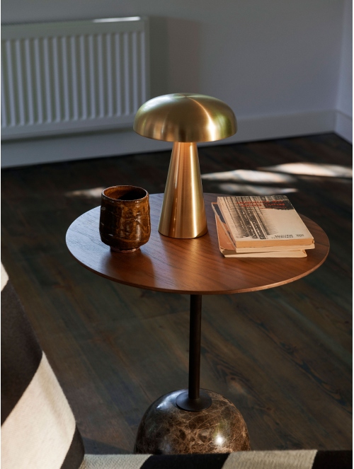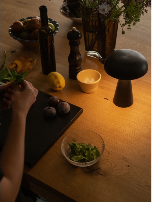 Entrega 3-5 semanas para fabricación.Como es una lámpara portátil que fusiona la elegancia contemporánea con una funcionalidad práctica y sofisticada. Presenta un cuerpo de aluminio torneado a mano y una pantalla tipo seta que proporciona una luz ambiental suave. Ideal para iluminar pequeños lugares, es recargable y se puede desplazar cómodamente donde más la necesites.