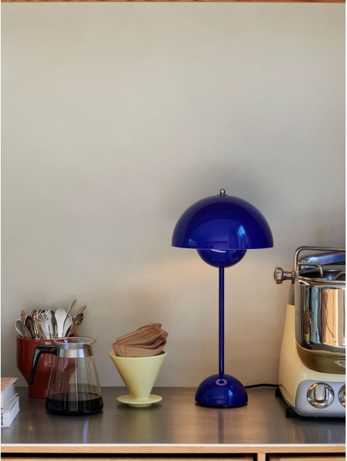 La Flowerpot captura la estética pop de finales de los 60 con dos semicircunferencias metálicas enfrentadas que generan una luz envolvente y distintiva. Su forma emblemática sigue siendo fresca y moderna, perfecta para cualquier espacio.