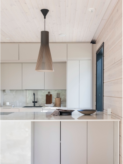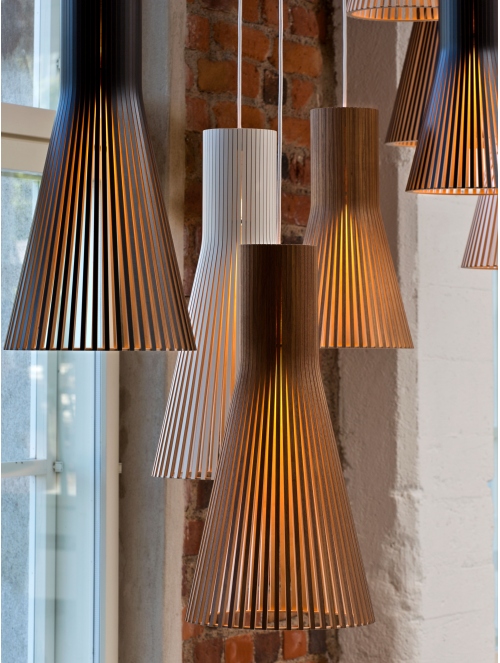 La versión pequeña de la familia Secto, fabricada a mano en Finlandia con listones de abedul prensado. Su diseño escandinavo, elegante y ligero, proporciona una iluminación cálida y acogedora, ideal para salones, comedores o espacios comerciales.