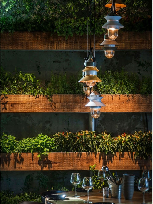 Entrega 10-15 días.Inspirada en los fanales de los barcos de pesca del Mediterráneo, esta lámpara de exterior personalizable permite crear múltiples composiciones. Ofrece la posibilidad de configurar la disposición de los visores y dirigir la luz según las necesidades de cada espacio. Su estética fresca y marítima la convierte en una opción ideal para terrazas, patios o pérgolas.