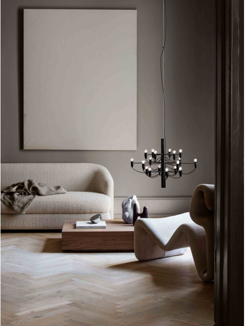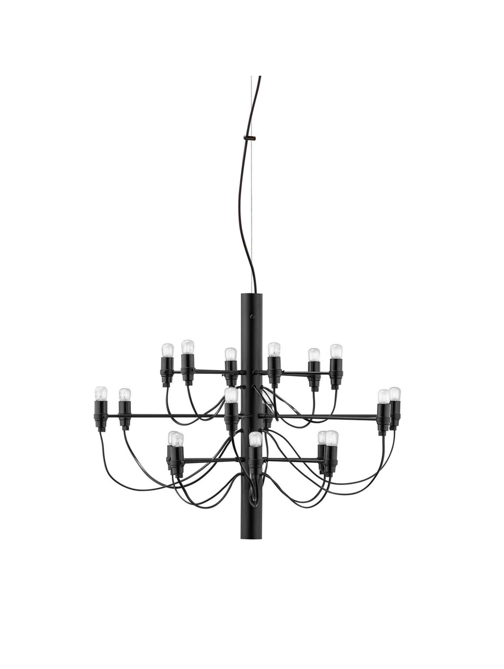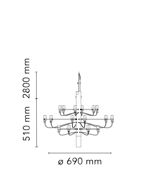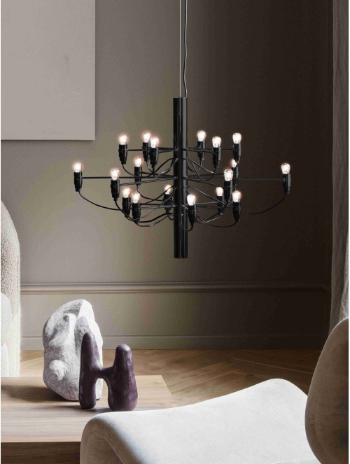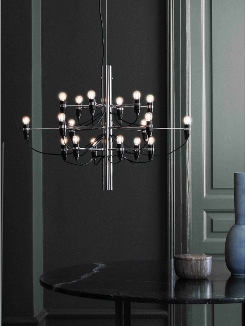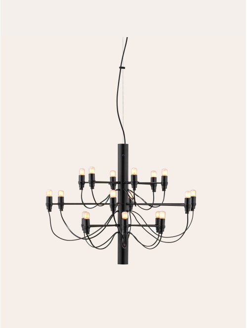 Una reinterpretación contemporánea del clásico candelabro, donde 18 brazos metálicos se despliegan en perfecta armonía, cada uno coronado por una bombilla esmerilada que difunde una luz suave y envolvente