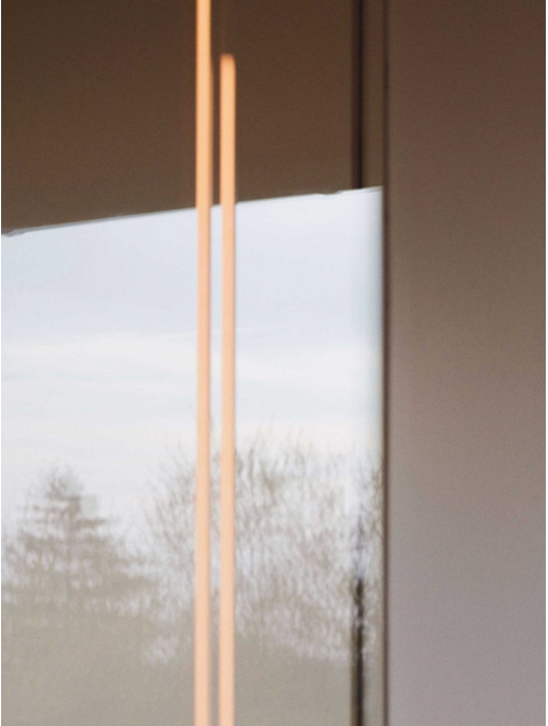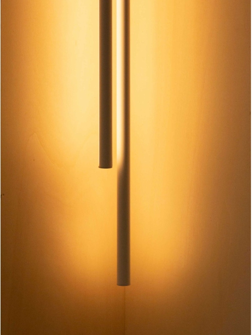 Una lámpara escultórica formada por dos brazos LED lineales suspendidos de forma paralela. Su diseño elegante y minimalista permite una iluminación cálida y difusa con control de intensidad, ideal para comedores, salones u oficinas modernas.
