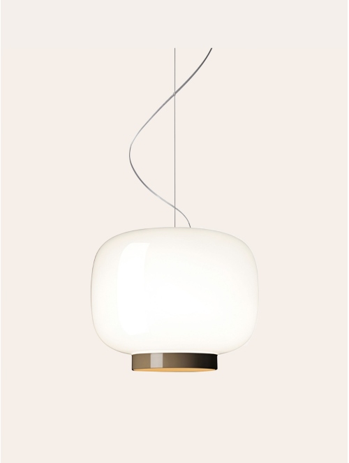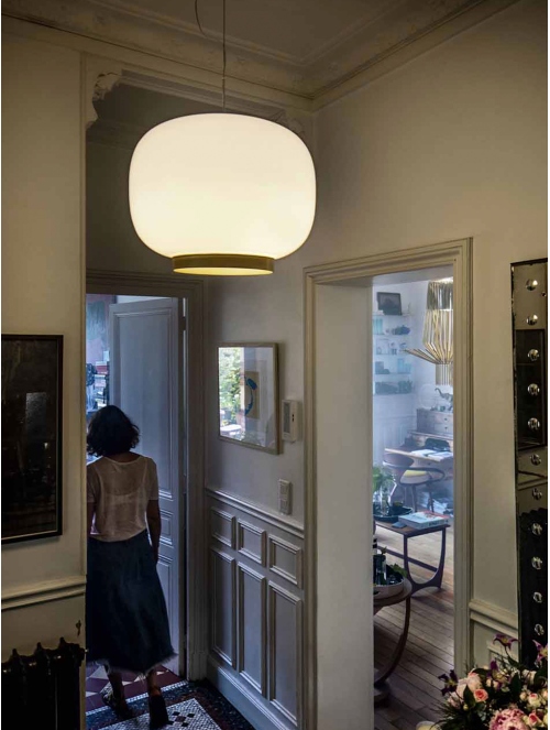 Chouchin es una lámpara colgante de líneas limpias y formas redondeadas, inspirada en las linternas japonesas tradicionales. Realizada en vidrio soplado pintado, su intenso color naranja aporta carácter y una luz directa hacia abajo, ideal para iluminar mesas o mostradores con un toque cálido y moderno.