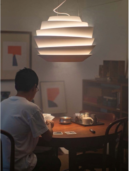 Entrega 3-5 semanas para fabricación.Le Soleil es una lámpara de suspensión con una estructura formada por bandas asimétricas que envuelven la fuente de luz, creando una composición dinámica y una iluminación cálida, difusa y sin deslumbramientos. Su diseño ofrece un equilibrio entre volumen visual y ligereza, aportando un carácter contemporáneo a cualquier espacio.