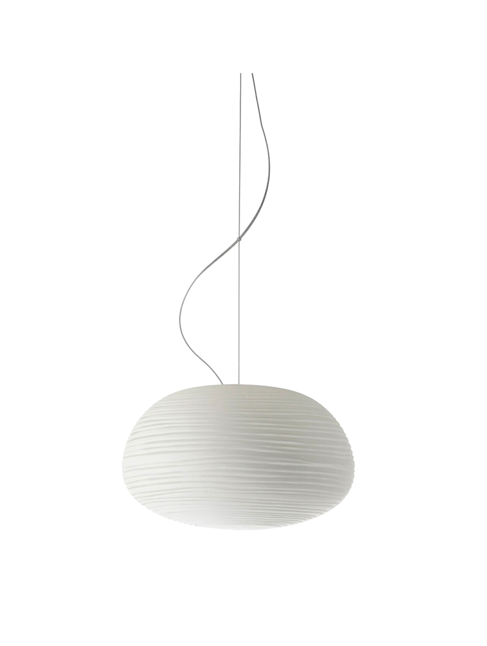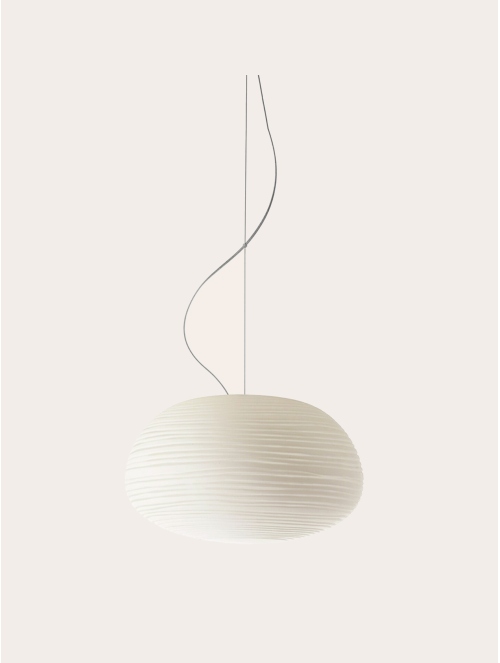 Entrega 3-5 semanas para fabricación.La colección Rituals de Foscarini reinterpreta la tradición oriental de las linternas de papel a través del vidrio soplado. Disponible en tres formas distintas (Rituals 1, 2 y 3), esta lámpara colgante emite una luz cálida y suave gracias a su difusor estriado, ideal para crear ambientes relajados. Gracias a su diseño, es perfecta tanto en solitario como en composiciones múltiples con sus diferentes versiones.