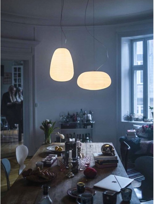 Entrega 3-5 semanas para fabricación.La colección Rituals de Foscarini reinterpreta la tradición oriental de las linternas de papel a través del vidrio soplado. Disponible en tres formas distintas (Rituals 1, 2 y 3), esta lámpara colgante emite una luz cálida y suave gracias a su difusor estriado, ideal para crear ambientes relajados. Gracias a su diseño, es perfecta tanto en solitario como en composiciones múltiples con sus diferentes versiones.