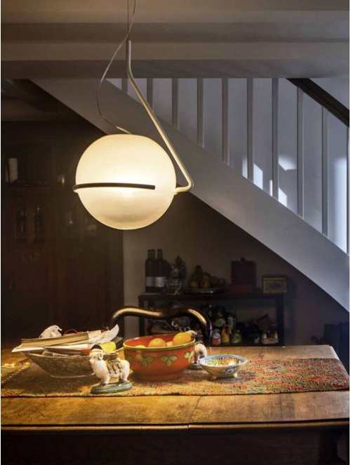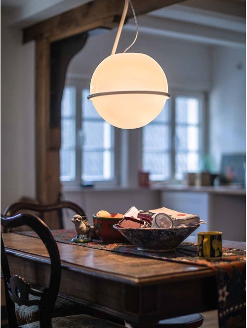 La Tonda es una lámpara de suspensión con difusor esférico de vidrio soplado blanco, que ofrece una iluminación suave y homogénea. Su diseño simple y elegante la hace ideal para ambientes tanto domésticos como profesionales.