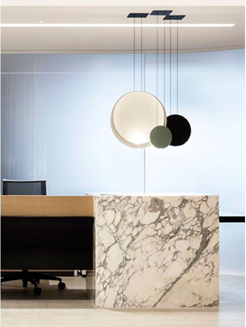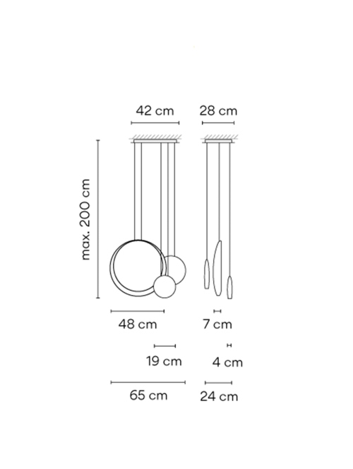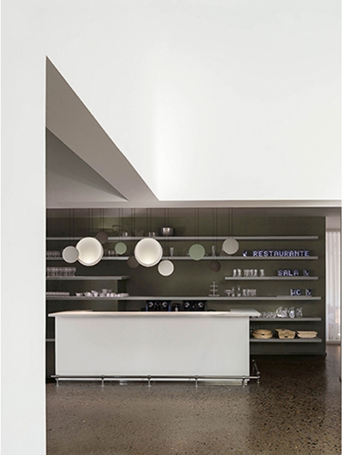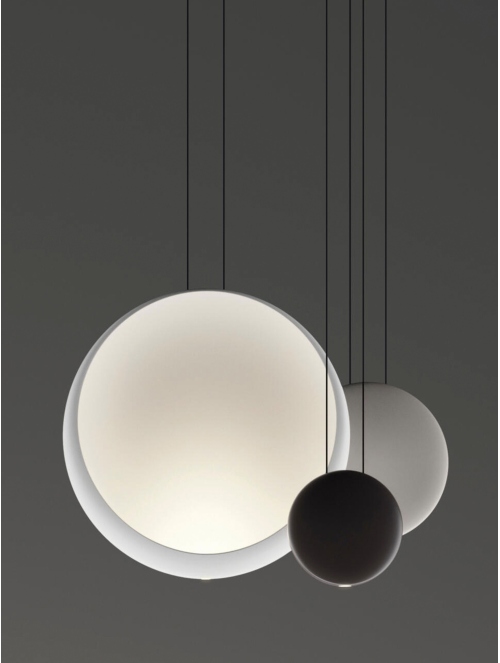 Cosmos es una composición de formas planas que, suspendidas en el aire, parecen flotar como planetas en órbita. Su diseño, unido a su acabado mate y uniforme, crea una sensación de profundidad y volumen, aunque cada pieza sea completamente plana.