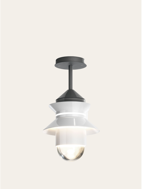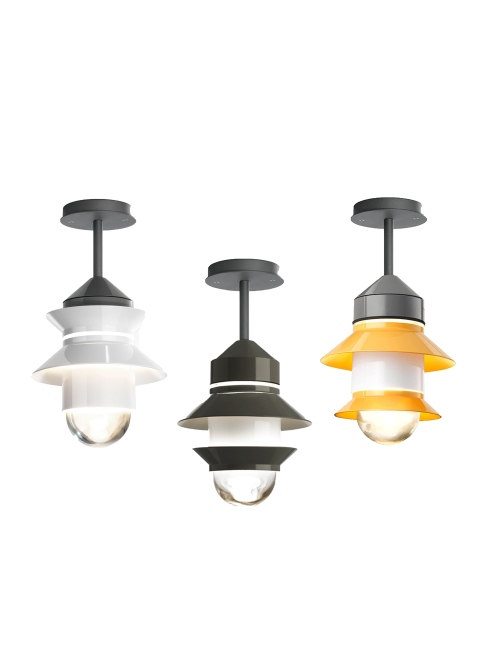 Entrega 3-5 semanas para fabricación.Inspirada en los fanales de los barcos de pesca del Mediterráneo, Santorini es una lámpara de techo para exterior de estética marítima. Gracias a sus visores móviles, se puede regular la dirección de la luz y personalizar su configuración con distintas combinaciones de difusores. Una pieza funcional y decorativa para terrazas, porches o espacios cubiertos al aire libre.